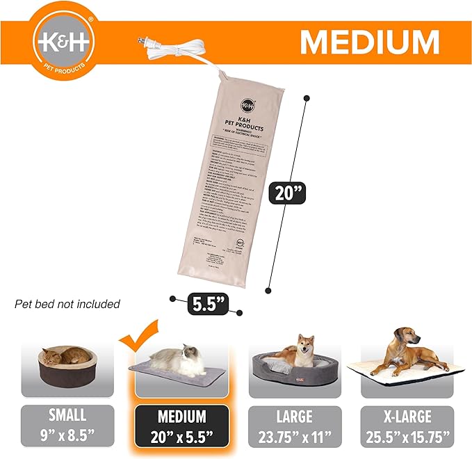- SIZE & ENERGY-EFFICIENT: K&H Medium Pet Bed Warmer measures 20" x 5½", making it perfect for medium pet beds, and it uses only 6 watts of power, ensuring low energy consumption while providing cozy warmth for your pet