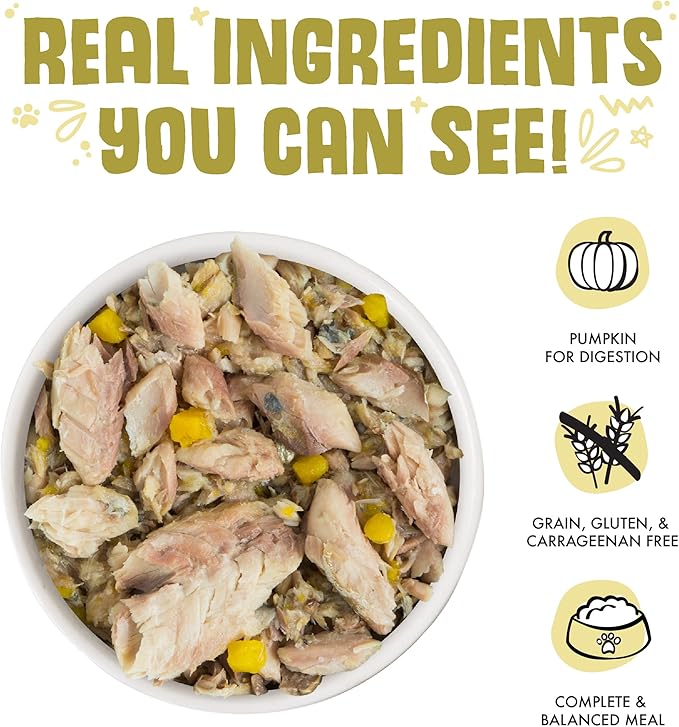 - Meow Luau (3oz cans, pack of 24) Featuring chunks of sustainably sourced, hand-flaked off the bone mackerel, and pumpkin in gravy. Pumpkin is a great source of fiber to support your cats digestive health.