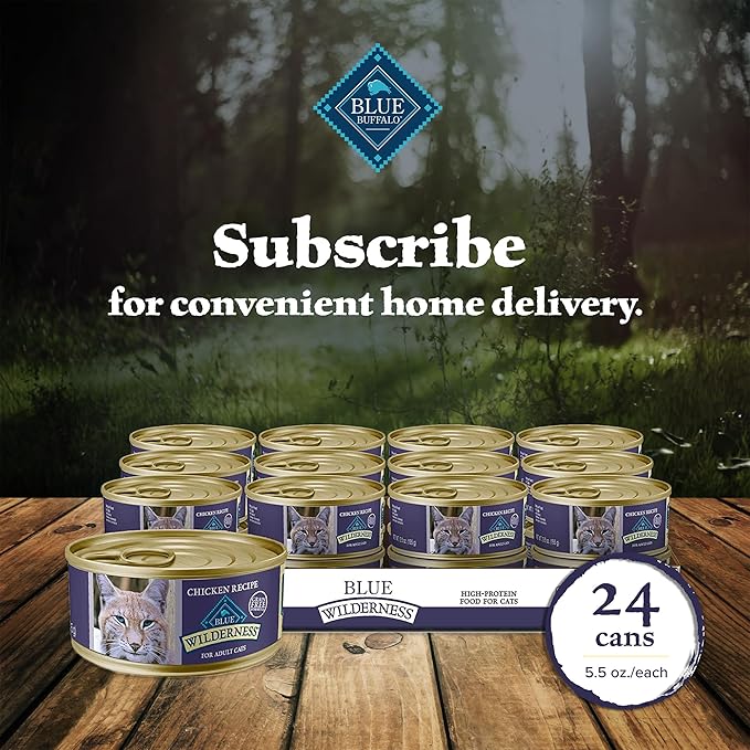 - Contains: Twenty-four (24) 5.5-oz cans of BLUE Wilderness High-Protein Grain-Free Natural Wet Cat Food Paté, Chicken Recipe