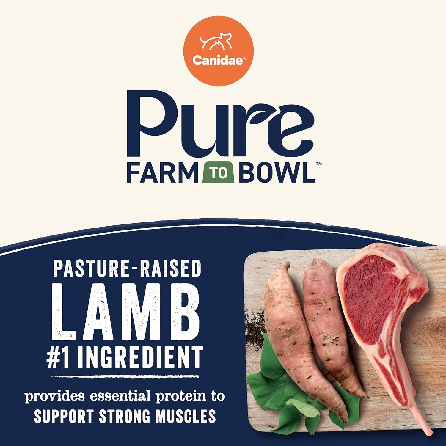Canidae Pure Farm to Bowl Pasture-Raised Lamb & Sweet Potato, Grain-Free Dry Dog Food, Adult, 22lb