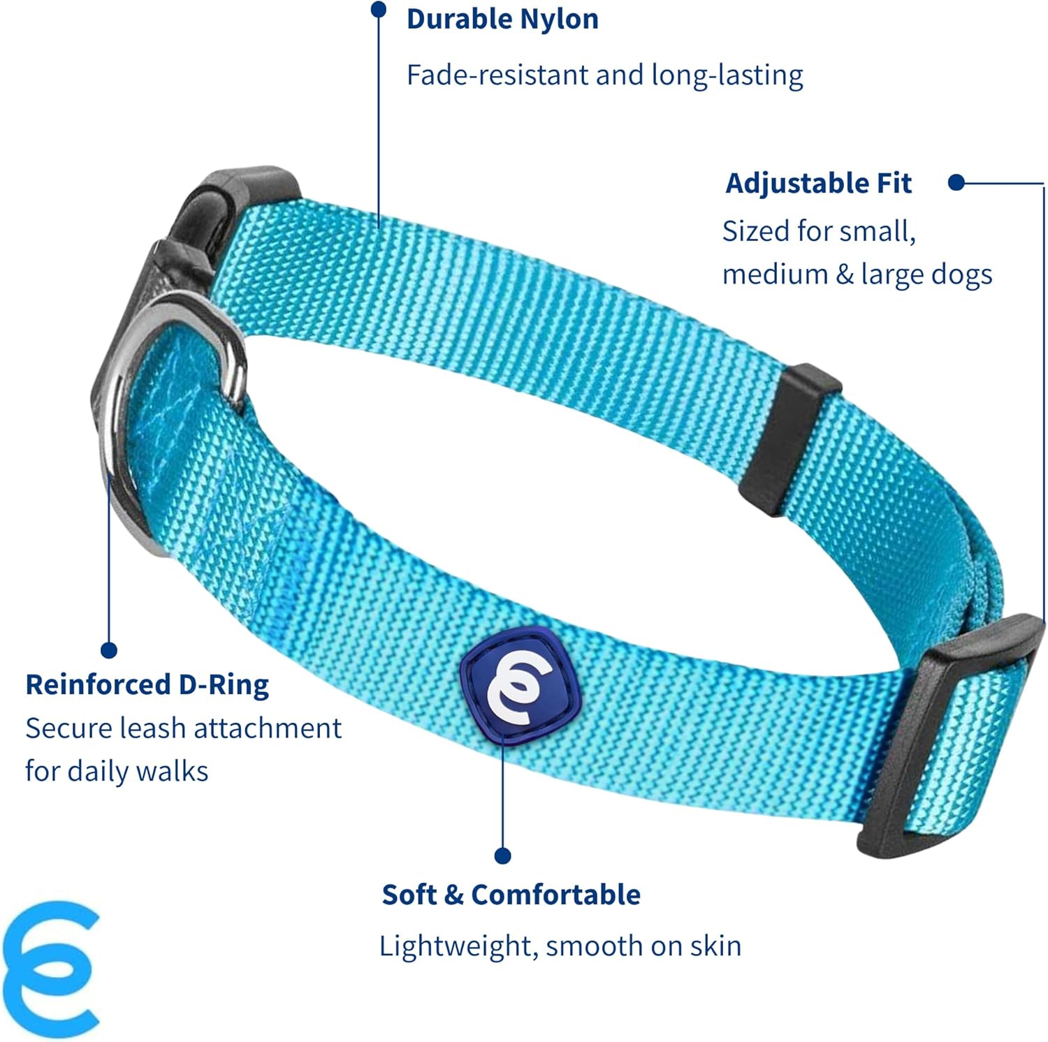 Blueberry Pet Essentials Turquoise Dog Collar | Adjustable Eco-Friendly Nylon Strap | Dog Collars for Small Dogs, Boy Dog Collar, Puppy Collar | 12-16 Inches