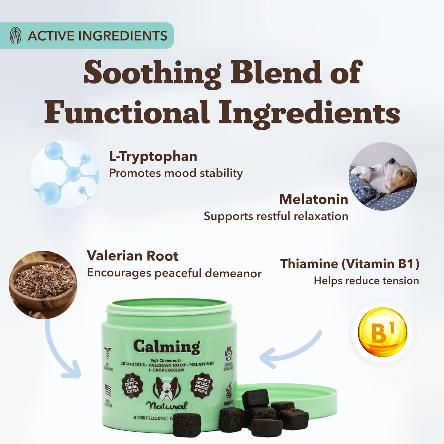 - ROAD TRIPS & TRAVEL ANXIETY: Long car rides or weekend getaways can trigger stress in dogs. Our blend of melatonin, chamomile, and L-tryptophan helps manage normal stress levels, making these the ideal dog anxiety chews for travel.