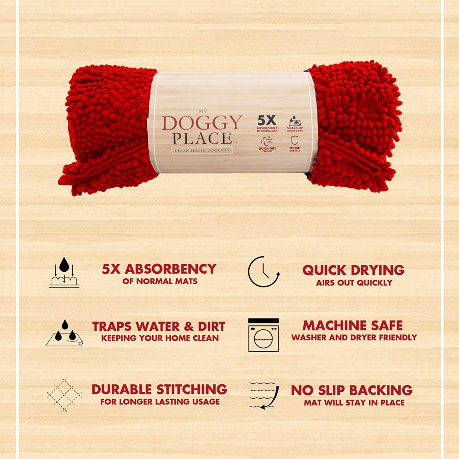My Doggy Place Microfiber Dog Mat for Muddy Paws, 36" x 26" Red - Absorbent and Quick-Drying Dog Paw Cleaning Mat, Washer and Dryer Safe - Non-Slip Rubber Backed Dog Floor Mat, Large