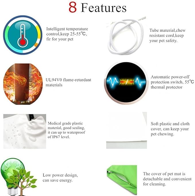 - Small heating mat certified with UL, IP67 waterproof inner surface, removable & washable outer covering, anti-overheating, anti-leakage and anti-urination, about 60" anti-bite spiral cable, adapter cable length is 45", you can always use it daily with confidence.