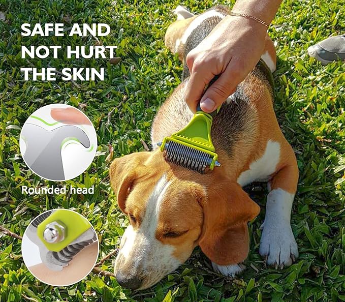 - Easy Pet Grooming Kit : This professional pet dematting tool kit breaks up tangles, effectively removes loose hair, dander, & dirt trapped beneath the fur, and stimulates the skin to promote a healthy coat. Comfortably and quickly get a professionally groomed look in minutes!
