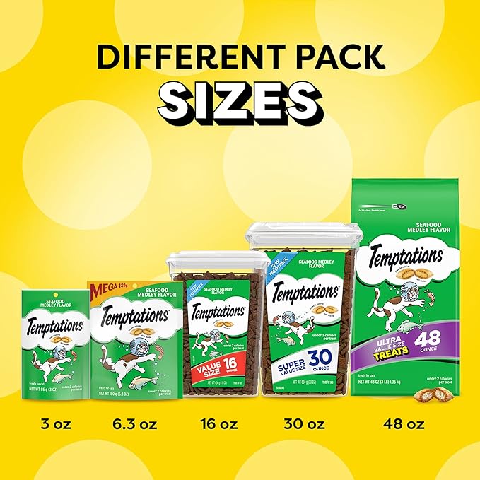 Temptations Classic Crunchy and Soft Cat Treats, Seafood Medley Flavor, 30 oz. Tub