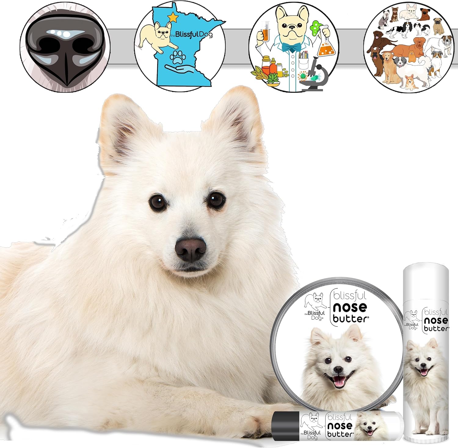 The Blissful Dog American Eskimo Nose Butter for Dry, Cracked Skin, Lick-Safe Dog Nose Balm with Moisturizing Shea Butter, Almond, Olive, and Essential Oils, Pet Supplies, Uncented, 8 oz.