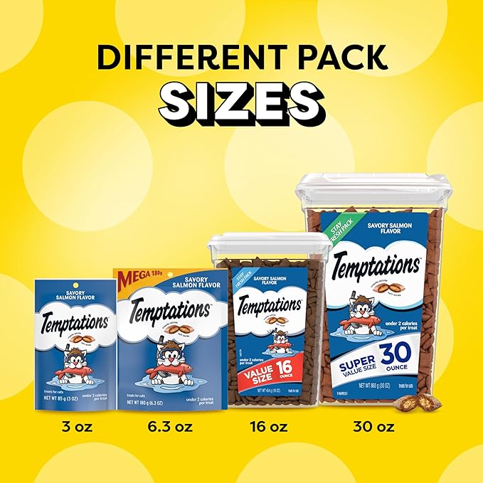 Temptations Classic Crunchy and Soft Cat Treats, Savory Salmon Flavor, 30 oz. Tub