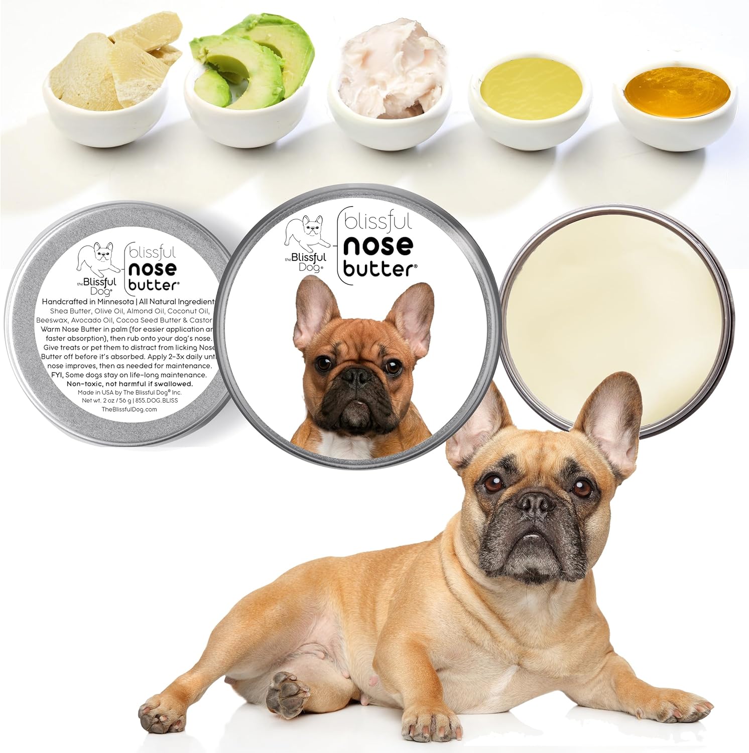 The Blissful Dog French Bulldog Black Masked Fawn Unscented Nose Butter - Dog Nose Butter, 8 Ounce