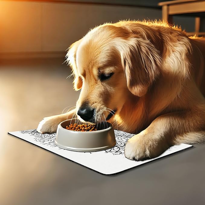 - Ideal Size Mat - to place under pet bowls, measuring 18 inches wide by 12 inches long and 5mm thick, this mat is perfectly sized to fit under pet food and water bowls, helping keep your floors clean from spills and messes.
