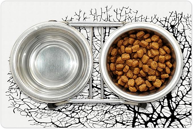 Lunarable Nature Pet Mat for Food and Water, Silhouette of Twisted Coral Reef Branches in Minimalist Tones Underwater Design, Non-Slip Rubber Mat for Dogs and Cats, 18" X 12", Black Print