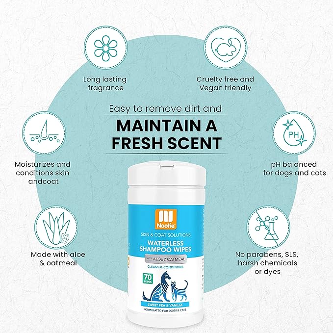 - Nootie Waterless Shampoo Wipes for Dogs & Cats