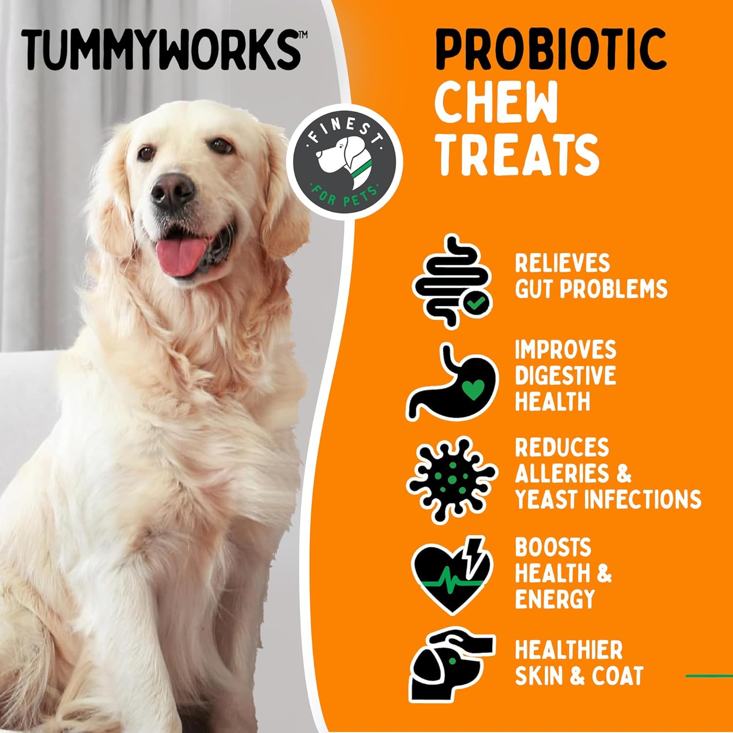 - Optimizes pet health: TummyWorks probiotic soft chews aid in restoring proper gut function for your dog, providing relief from allergies, hot spots, diarrhea, yeast infections, itching, gas, bad breath, scratching, bloating, and constipation. It offers a comprehensive solution for a happier, healthier pet