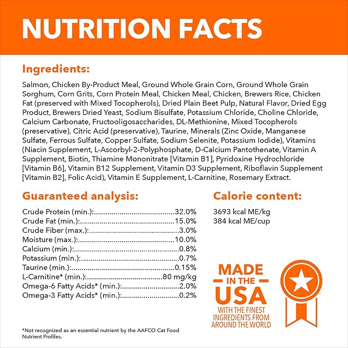 - Complete and Balanced for Adult Cats: 100% nutrition, 0% fillers, this dry cat food supports whole-body health with essential nutrients and is enriched with antioxidants for a strong immune system