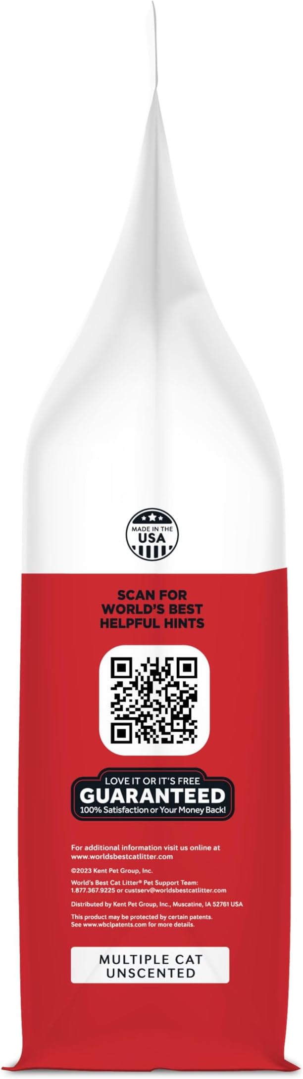 WORLD'S BEST CAT LITTER Multiple Cat Unscented, 15-Pounds - Natural Ingredients, Quick Clumping, Flushable, 99% Dust Free & Made in USA - Long-Lasting Odor Control & Easy Scooping