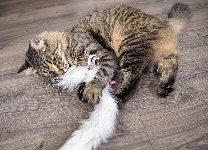 - FEEL OF REAL PREY: The touch-activated cat toy features a soft plush body, ribbons, and real feathers, mimicking the multitextured feel of real prey to stimulate your kitty's hunting instincts and further entice play
