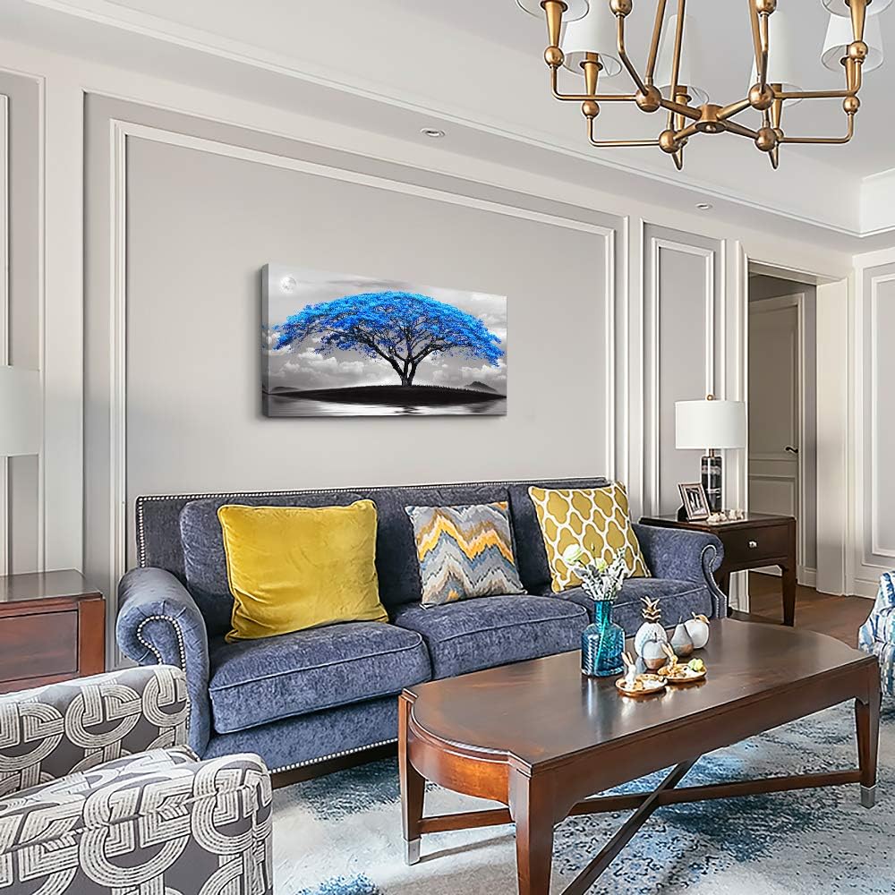 canvas wall art for living room bathroom Wall Decor Black and white landscape Blue tree moon painting to Hang Home Decorations for office bedroom kitchen Works canvas Prints pictures 20" x 40"inch
