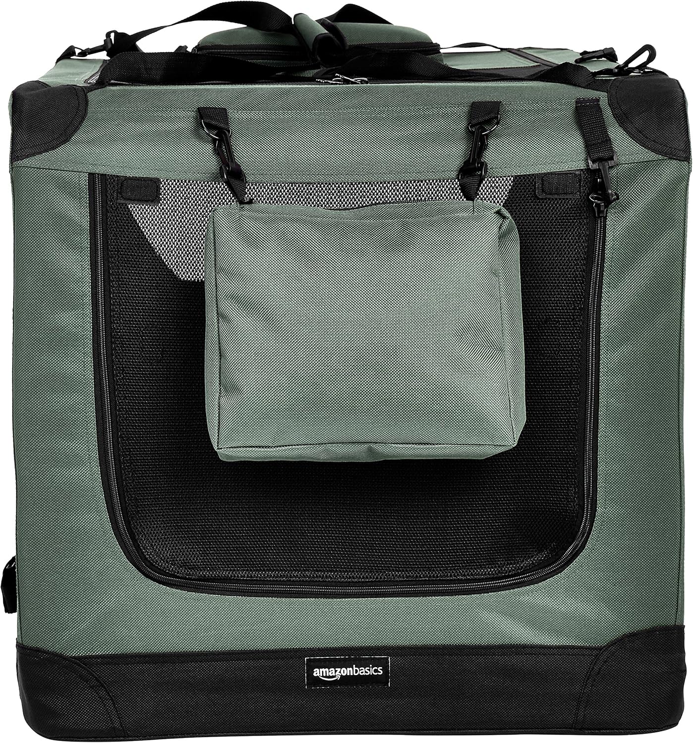 Amazon Basics Folding Portable Soft Pet Dog Crate Carrier Kennel, 36 x 24 x 24 inches, Grey