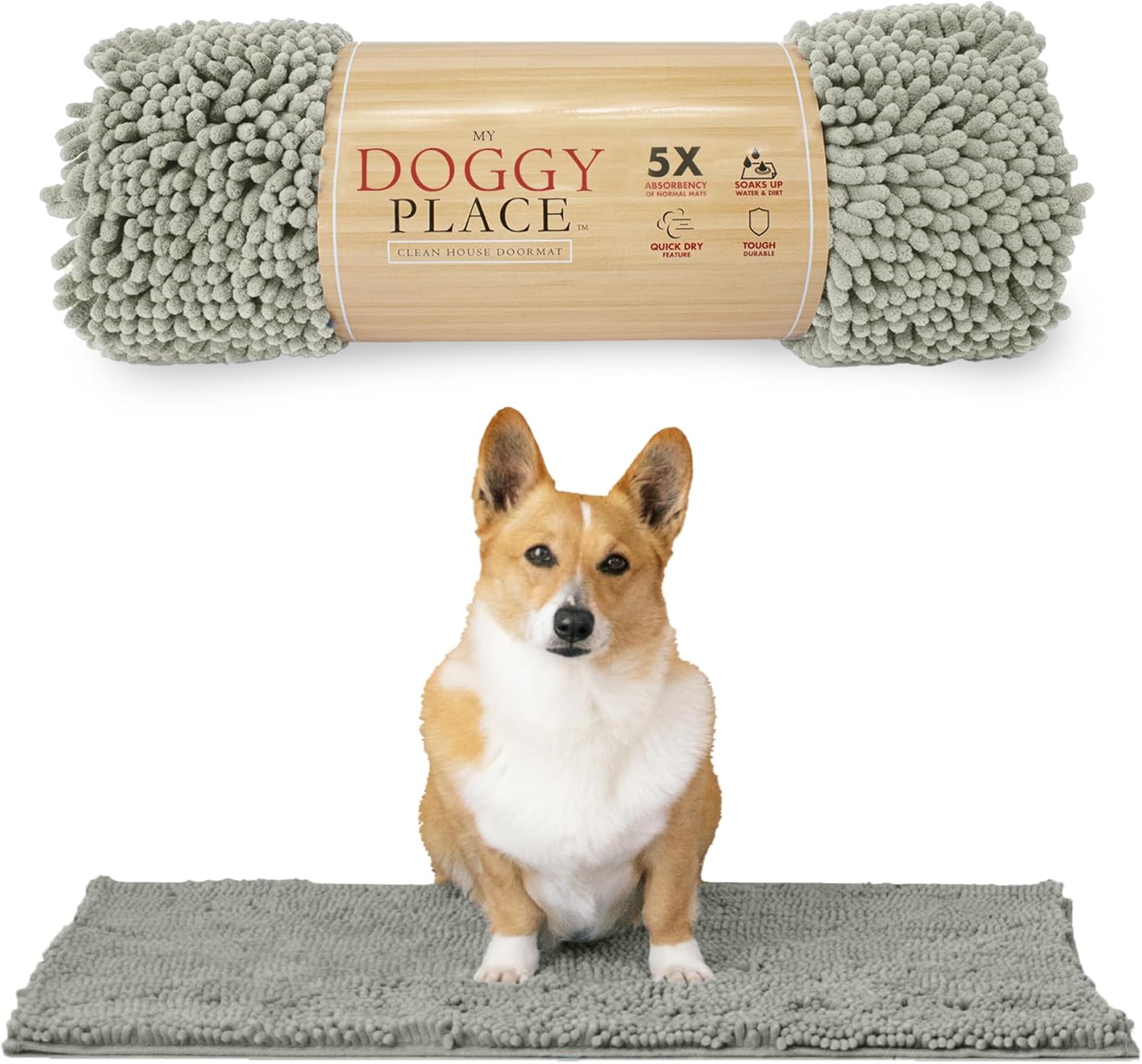 My Doggy Place Microfiber Dog Mat for Muddy Paws, 31" x 20" Light Gray - Absorbent and Quick-Drying Dog Paw Cleaning Mat, Washer and Dryer Safe - Non-Slip Rubber Backed Dog Floor Mat, Medium