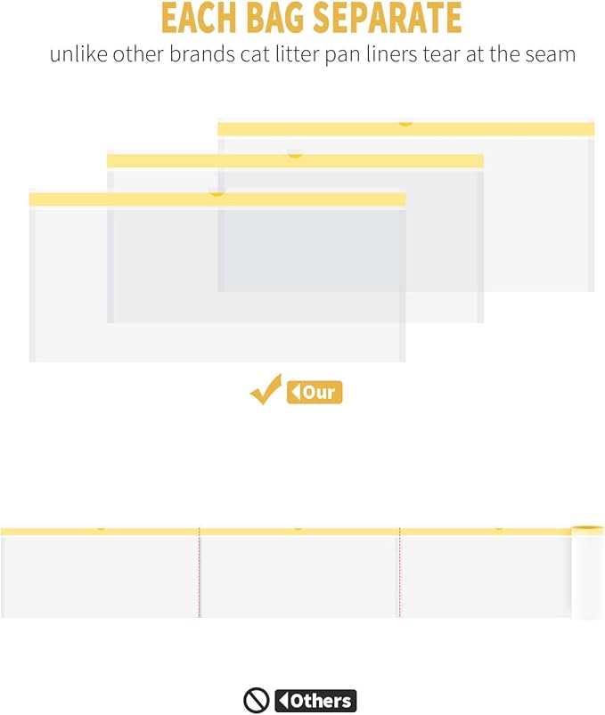 - EASY TO USE: Each bag is separate, unlike other brands cat litter pan liners which tear at the seam when you open it, no more messes. Leak proof and extra durable, contains no perfumes or deodorants
