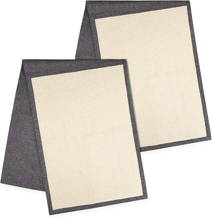 - SCRATCH & PLAY: Make your cat and yourself happy with this set of 2 scratch mats made of sisal fabric for your sofa or chair. The mat provides a surface that deters cats from scratching your furniture, rugs and carpets.