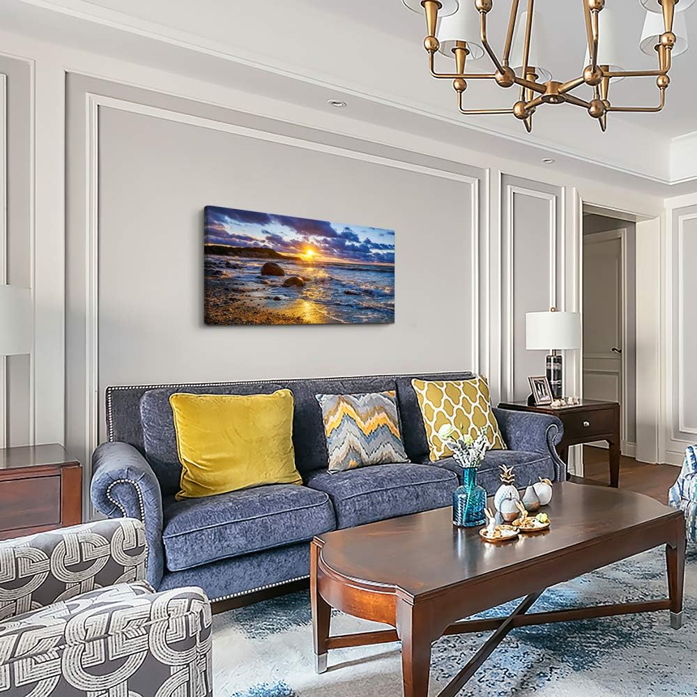 canvas wall art for living room bedroom Wall Decor blue ocean landscape painting Hang Home Decoration office bathroom kitchen sun beach sea golden Waves on the beach canvas art Prints pictures Works