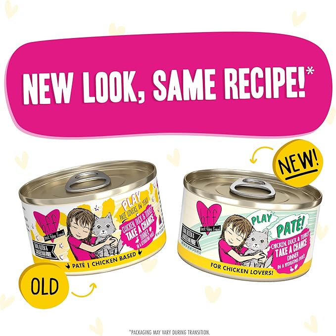 Weruva B.F.F. Play - Best Feline Friend Paté Lovers, Aw Yeah!, Chicken, Duck & Turkey Take a Chance with Chicken, Duck & Turkey, 2.8oz Can (Pack of 12)