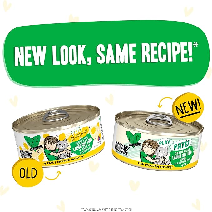Weruva B.F.F. Play - Best Feline Friend Paté Lovers, Aw Yeah!, Chicken & Lamb Laugh Out Loud with Chicken & Lamb, 5.5oz Can (Pack of 8)