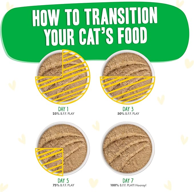 - B.F.F. Play - Protein-rich, high-moisture wet cat food that is low in carbs and fat. Pate Lover’s, Aw Yeah!