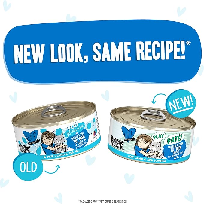 Weruva B.F.F. Play - Best Feline Friend Paté Lovers, Aw Yeah!, Chicken & Tuna Til' Then with Chicken & Tuna, 5.5oz Can (Pack of 8)