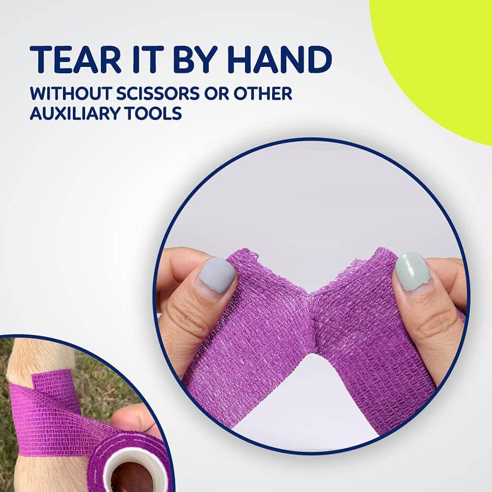 - [SELF-ADHESIVE]: WePet wrap sticks to itself but NOT to fur making it pain-free to pull off. Do not worry about any adhesive residue. It’s very easy to tear by hand.