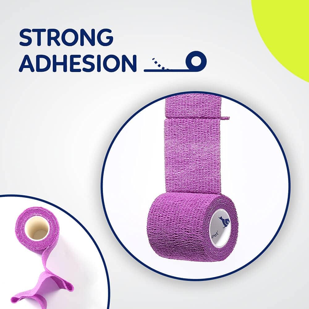 - [LIGHTWEIGHT BREATHABLE MATERIAL]: It is made from natural rubber latex. Porous fabric allows for ventilation so your pet’s skin can breathe freely underneath, which is good for the pet’s skin and helps healing better and faster. Each roll is individually wrapped in clear cellophane, clean and hygienic.