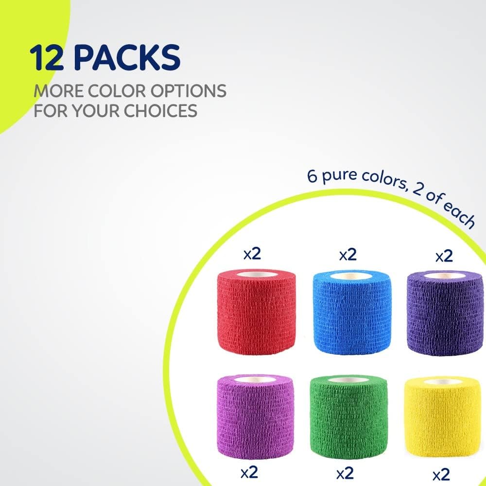 WePet Pet Wrap, Self-Adhesive Non-Woven Bandage, Emergency Cohesive Gauze, for Dogs, Cats, Horse, Birds, Wounds, Wrist Healing, Ankle Sprain, 2 Inch, 12 Rolls