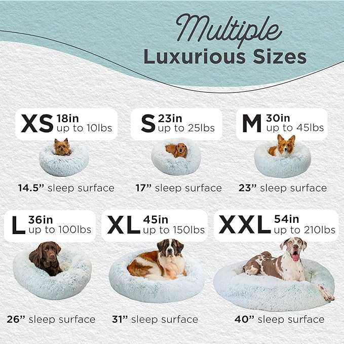 - Calming Dog Bed: 30-inch donut cuddler provides a cozy haven designed to help soothe anxiety and stress in medium dogs up to 45 lbs; ideal for breeds such as Cocker Spaniel, Beagle, Boston Terrier, Shiba Inu, Corgie, French Bulldog, English Bulldog
