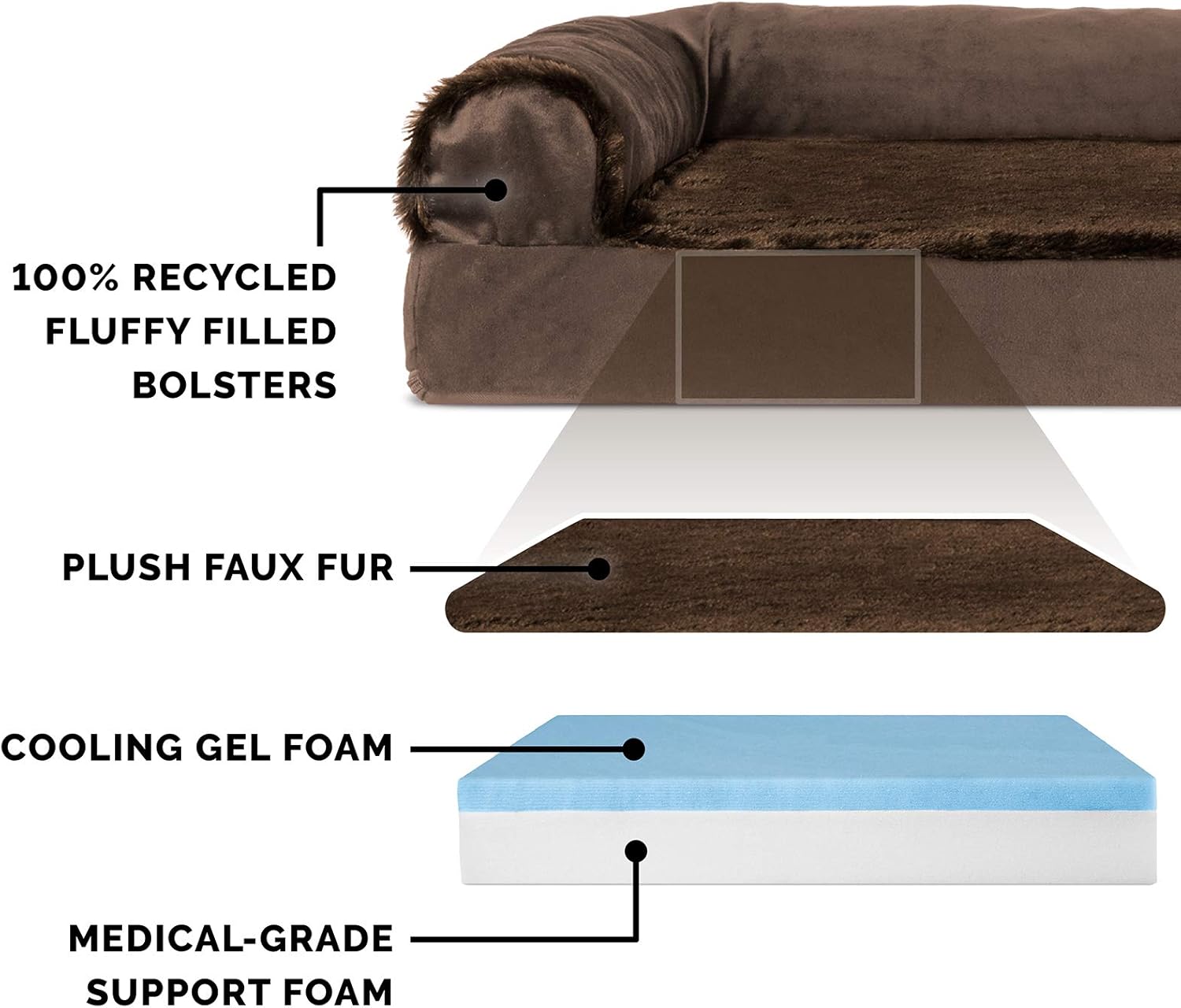 - SLEEP SURFACE: The bolsters and back rest are wrapped in easy-care micro suede, while the removable foam base features the same material along with ultra plush faux fur as reversible surfaces to better suit your pet's desired form of comfort