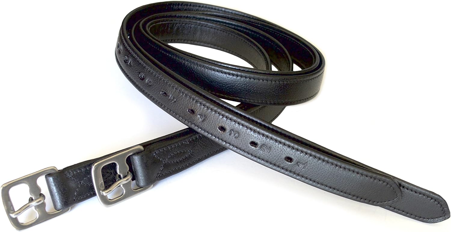 54" / 60" New 1" Super Soft Cow Leather English Stirrup Leathers Nylon Core Non Stretch Leathers (Black, 54" x 1")