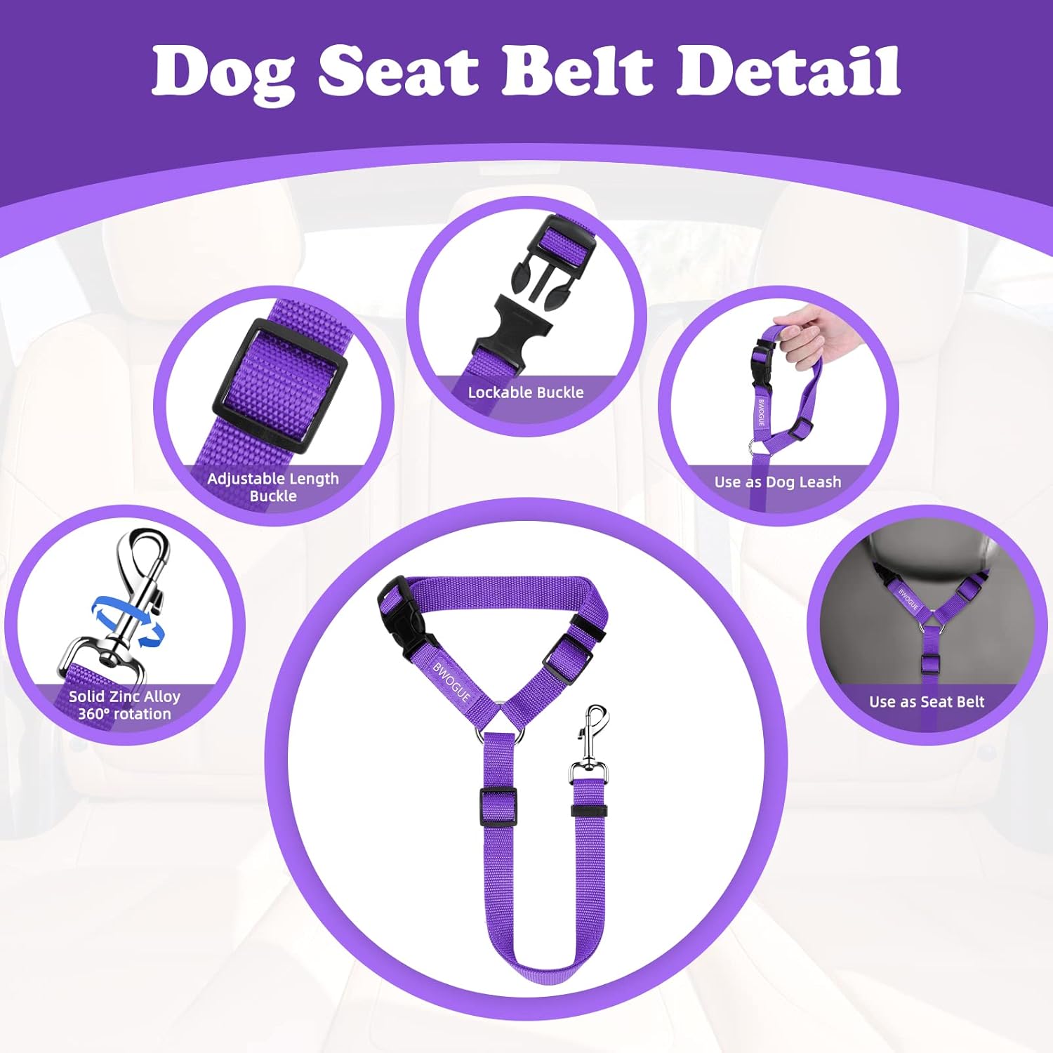 - EASY USE:The tangle-free nylon straps quickly and easily attaches to vehicle headrests. Safety strap is easily removed making it the perfect dog leash for your vehicle's back seat.