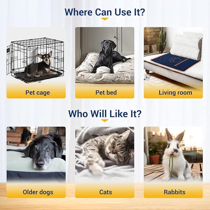 - Dog heating pad certified with UL, IP67 waterproof PVC inner surface, removable & washable polyester cover, anti-overheating, about 80" anti-bite spiral cable tube, you can always use it daily with confidence.