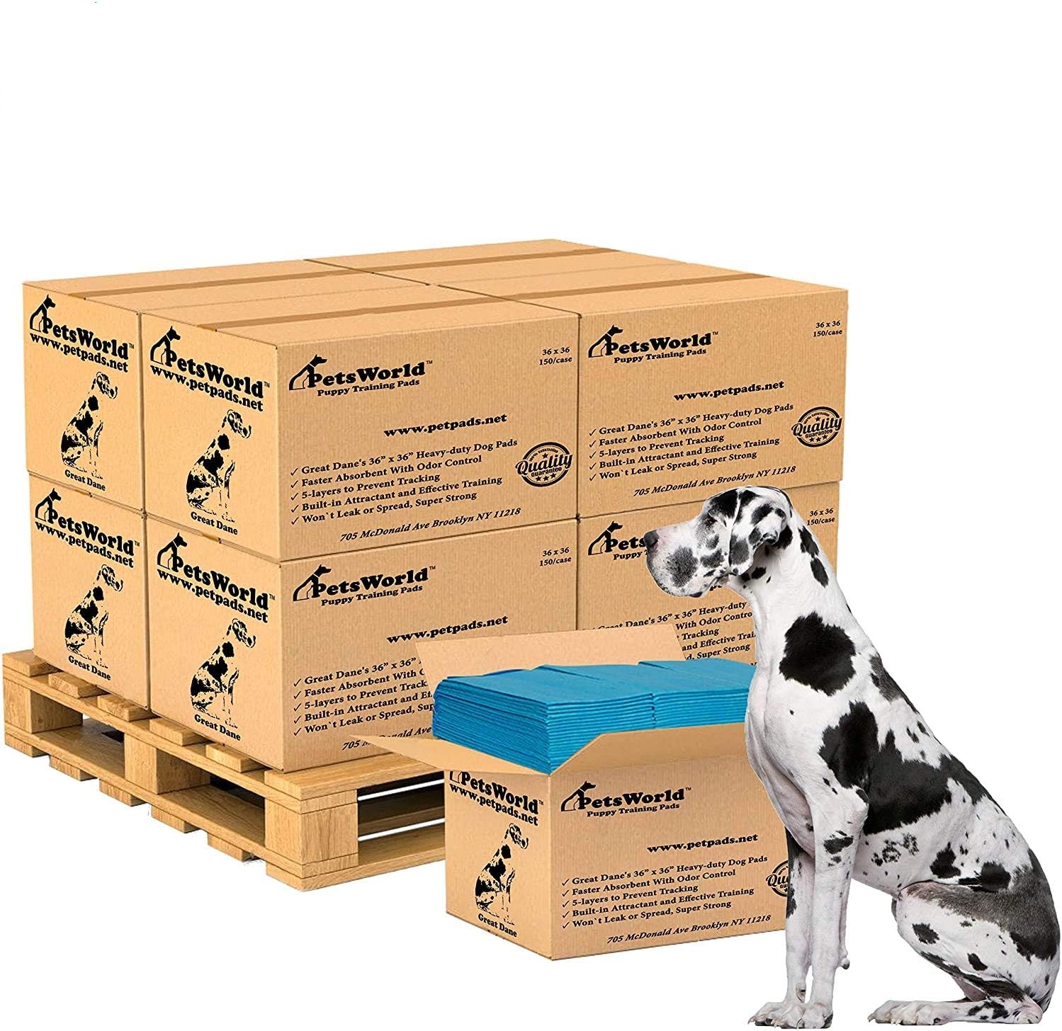 PETSWORLD Giant Dog Potty Pads, Odor-Eliminating, 36" x 36", Ultra Absorbent 5-Layer Leak-Proof Training Pads for Dogs & Cats (36x36, 1200 Count)
