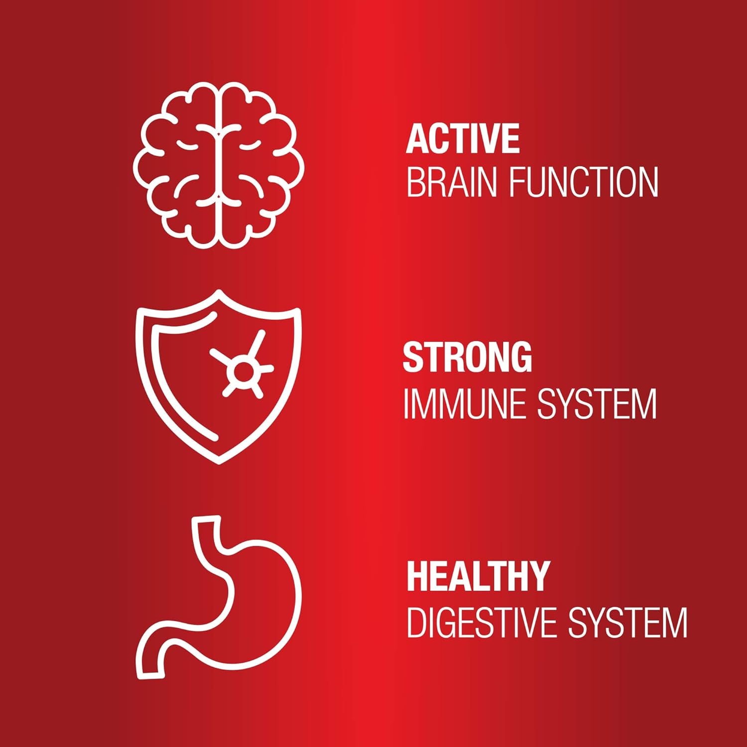 - Formulated to help support Active Brain Function, Strong Immune System, and Healthy Digestive System