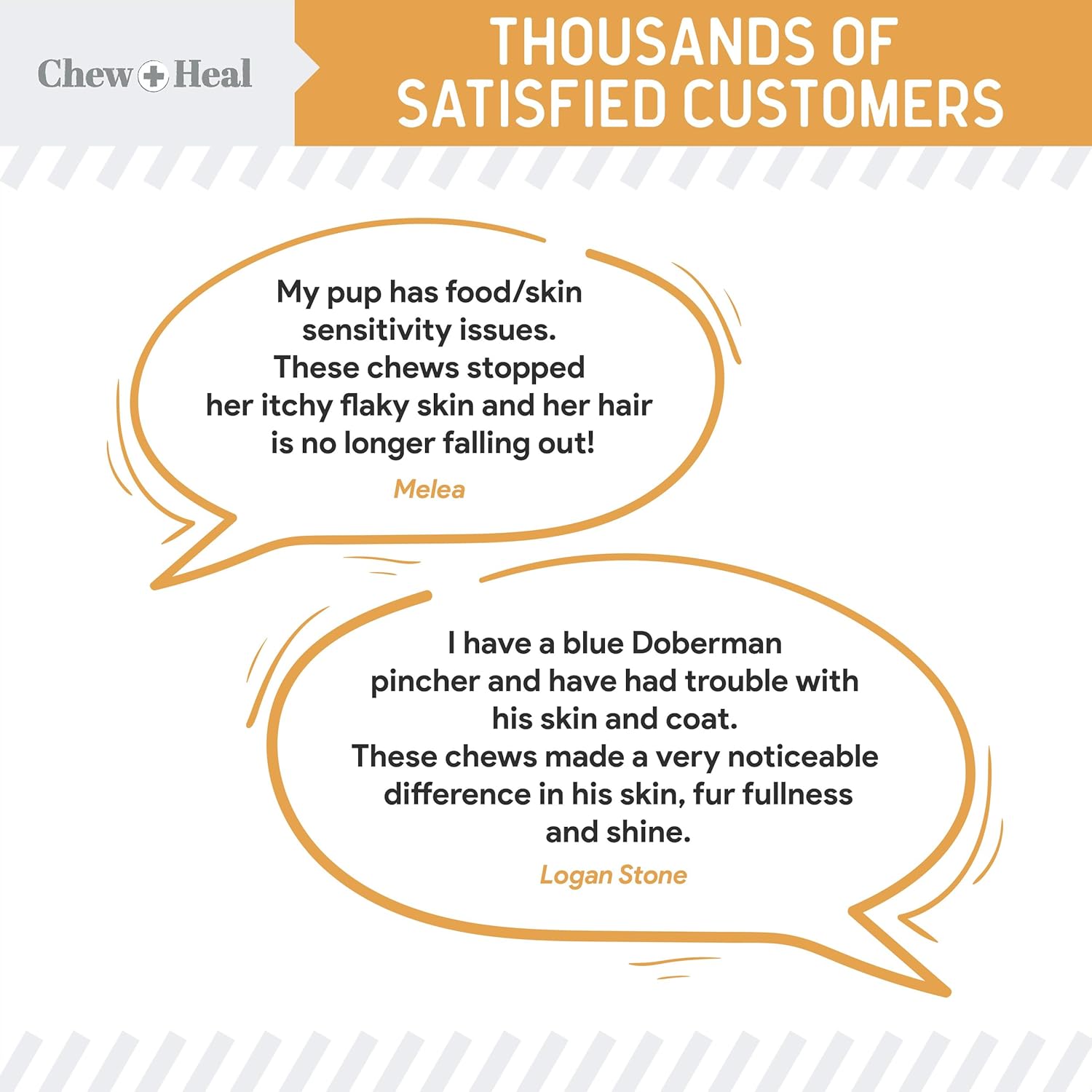 - PREVENTS SKIN ALLERGIES: This anti itch for dogs not only softens the skin, it gives it a glossy shine and helps prevent allergic reactions. This reduces dandruff and itchy skin, helping make your dog feel more comfortable in addition to being healthier! Say goodbye to greasy or dirty coats that have a unpleasant oily smell. These dog bites help kick-start the body’s natural processes to improve fur health.