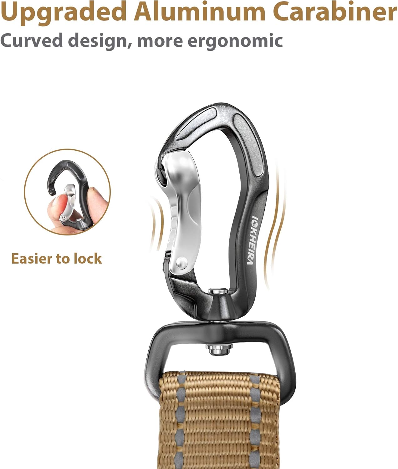 - Updated Aviation Aluminum Alloy Carabiner: Our carabiner is made of aviation aluminum and is lightweight and sturdy, with a maximum tensile force of 900 lbs. The curved design is more ergonomic so that it can lock the D-ring more easily.