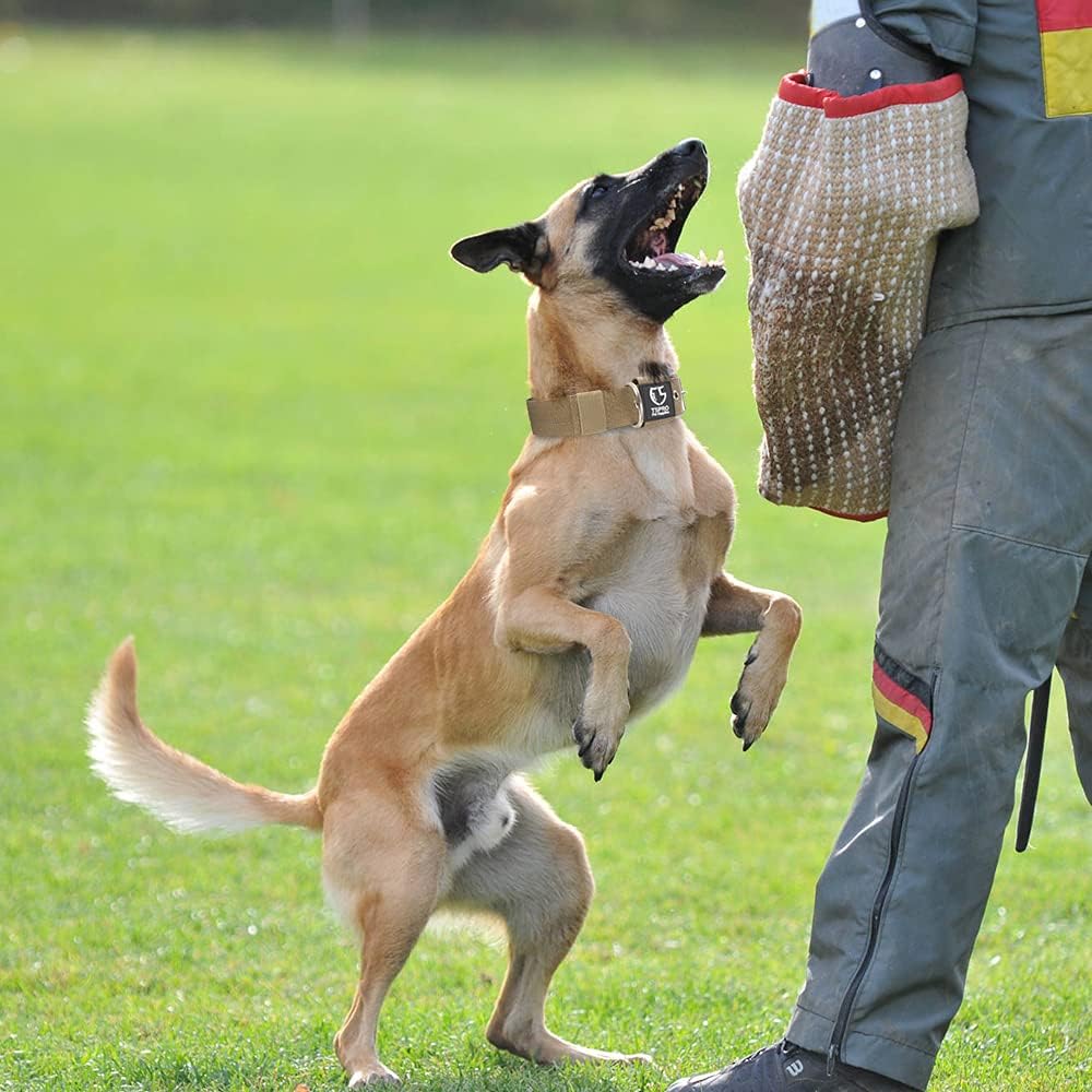 TSPRO Tactical Dog Collar 1.5 Inch Wide Thick Dog Collars with Heavy Duty Metal Buckle, Durable, Strong, Adjustable for Medium to Large Dogs (Khaki M)