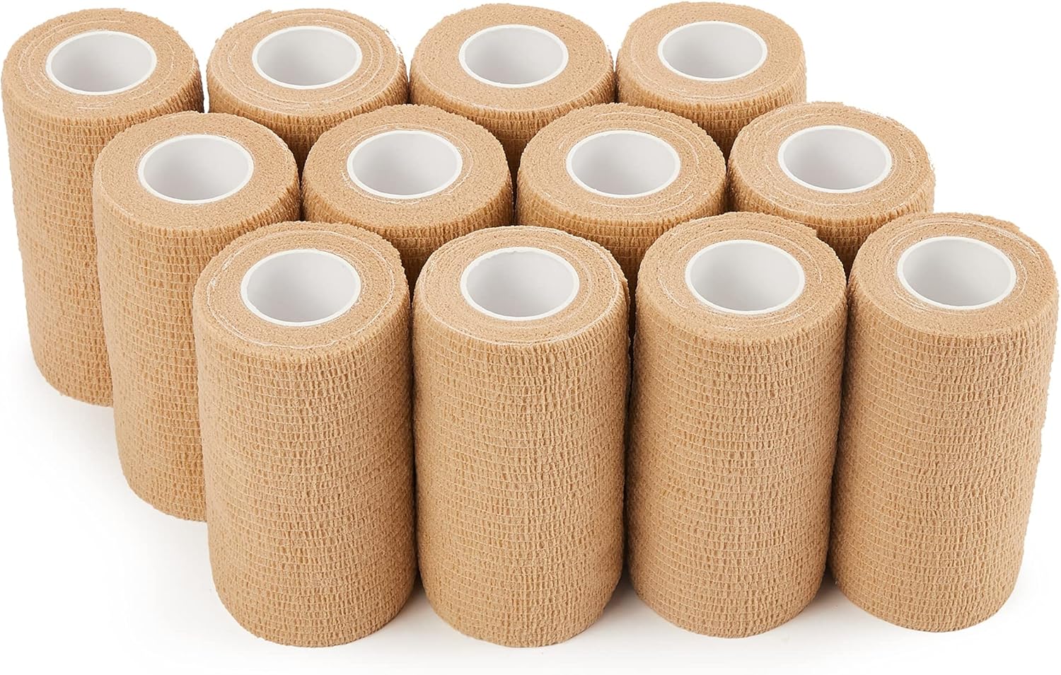 - Package Content: Come with 12 rolls cohesive bandage in beige, the width is 4 Inches and the streched length up to 5 Yards. Each roll individually polybagged for convenient use and storage, practical value pack.