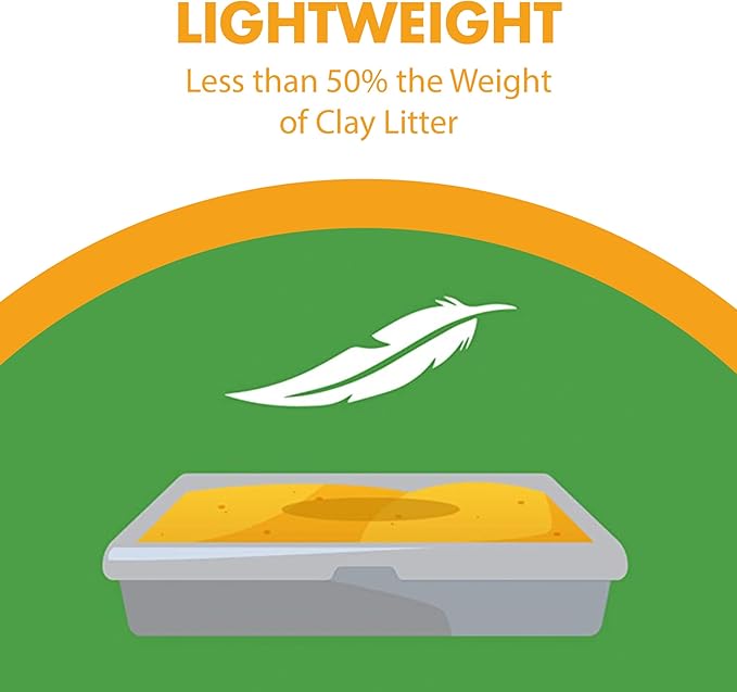 - LIGHTWEIGHT CAT LITTER so changing and refilling the cat litter box is fast and easy. That’s easy because this absorbent non-clumping kitty litter is natural and less than half the weight of clay litter and leaves no messy cloud of dust.