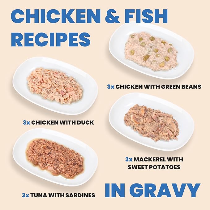 - PREMIUM, HUMAN-GRADE INGREDIENTS – Our Wet Cat Food is made with HQS meat and fish as the first ingredient, originally fit for human consumption, now crafted exclusively for pets. With tuna, chicken, duck, sardines, green beans, mackerel & sweet potatoes.