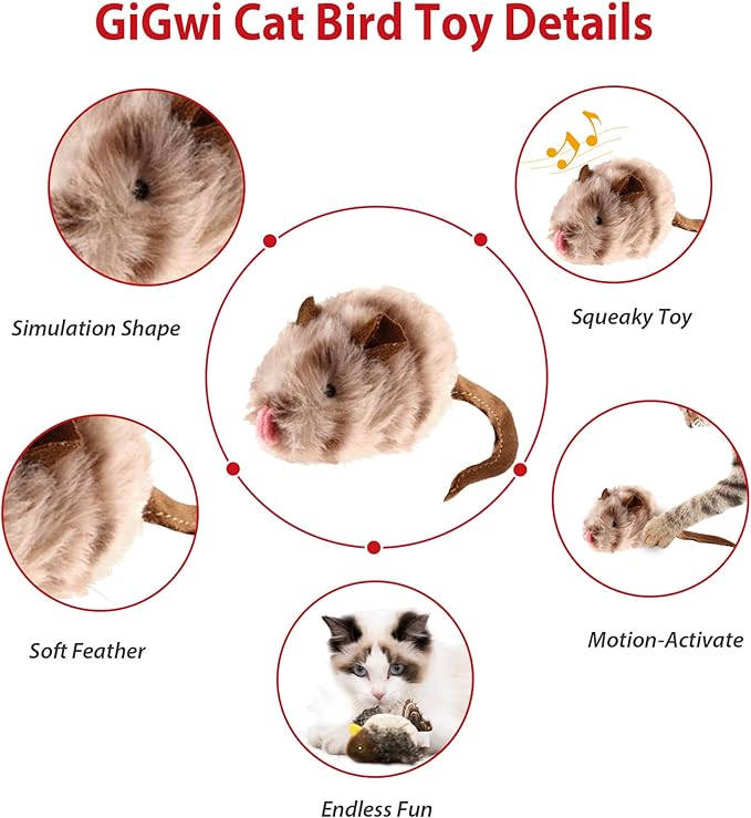 Gigwi Cat Toys for Indoor Cats, Interactive Cat Toy with Real Squeaky Mouse Electronic Sound Chirping, Kitten Toys Automatic Cats Mice Toy for Exercise & Kicker to Self Play, Relieve Boredom