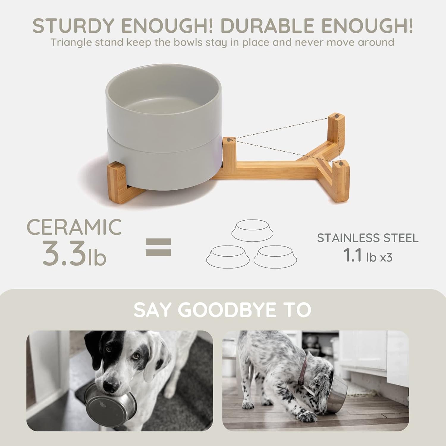 - Double Bowl Design:One dog bowl for food and one for water, Each ceramic cat bowl has a Unique wooden stand, raising the dishes closer to your pet for more comfortable eating