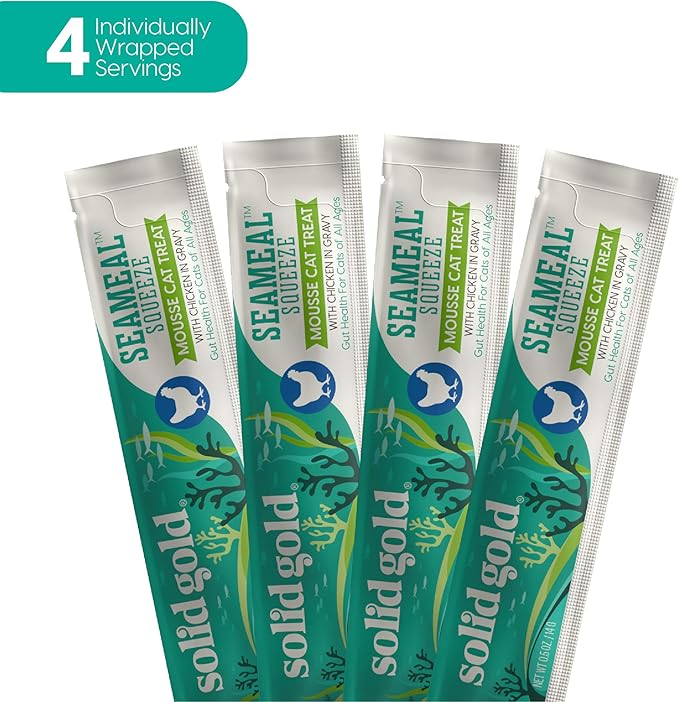 SeaMeal Squeeze Chicken Lickable Cat Treats with Seaweed for Skin & Coat - Wet Cat Treats with Digestive & Immune Health Support - Natural, Holistic, Grain Free (48 Squeezes)