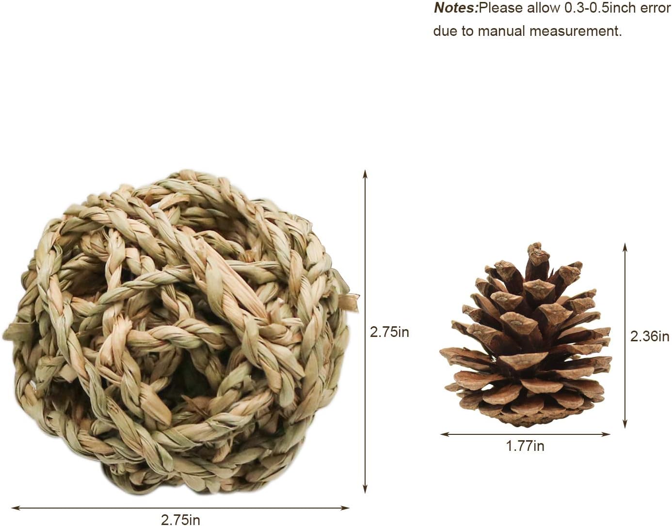 10 Pcs Small Animals Play Balls Rolling Activity Chew Toys Gnawing Treats for Rabbits Guinea Pigs Chinchilla Bunny Natural Balls, Pet Cage Entertainment Accessories(10Pcs)